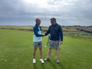 The 2025 Station Masters GC Championship final and Seniors final both took place in slightly breezy conditions over the Buddon Course on Saturday. Club Championship finalists Mick Turnbull and four times reigning champion Cameron Goodlad, fought a very close match with the lead changing hands throughout. A rare missed putt for Cameron at the 14th followed by a great birdie for Mick at the 16th saw him going 2 up. Mick went on to seal a 2 and 1 win on the 17th. Fantastic golf from both players.