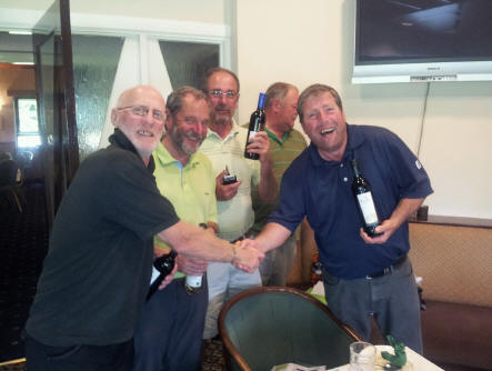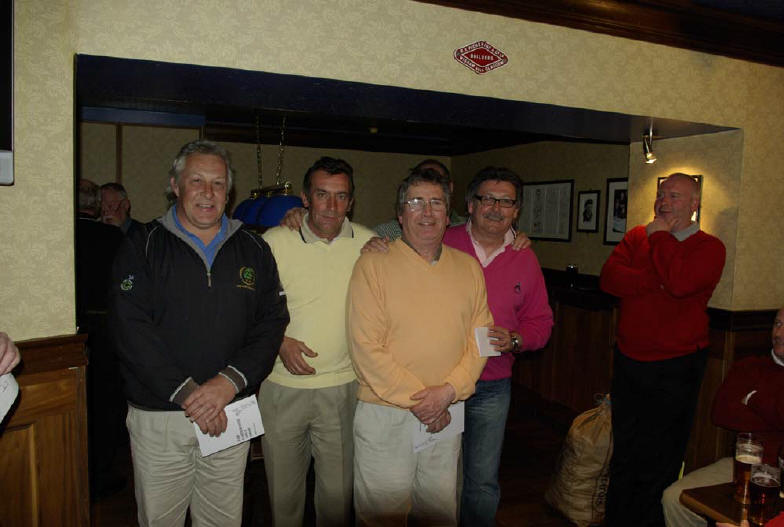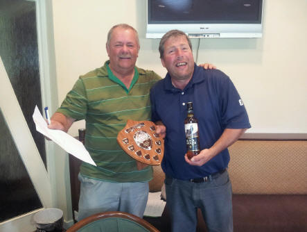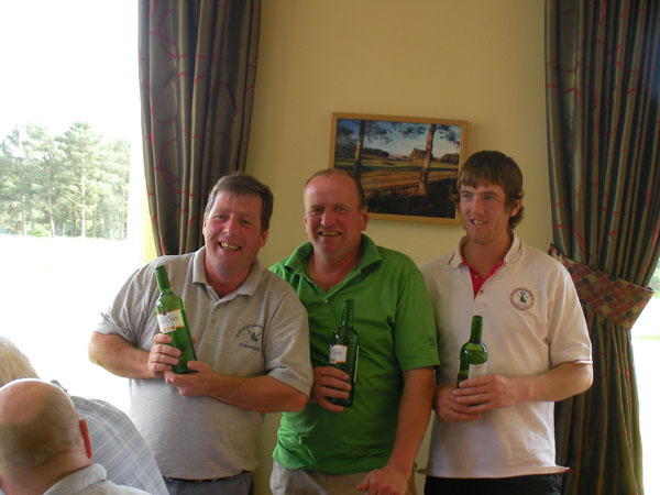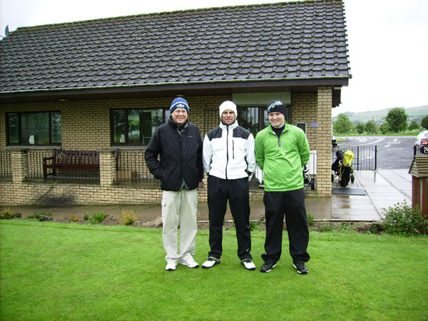 rather miserable conditions. The weather failed to put off the winner on the day, Martin Connor, who scored an excellent 32 points. Martin picked up the inaugural ‘Kiwi Shield’, donated by New Zealand member Graham Bell during his stay last summer, along with a club shirt (too small unfortunately, even though it was XL! – well we didn’t know Martin was going to win did we?). The team prize was picked up after some spectacular play and loads of Stableford points by Kev Ritson, Greg Docherty and Captain Jim Simpson. Greg Docherty also won nearest the pin and his old man Frank won the longest drive. Captain Simpson won the money by virtue of having selected Martin in the draw before the match. Hard luck to everyone who didn’t win anything – it serves you right for laughing at the Captain for forgetting his waterproof breeks!