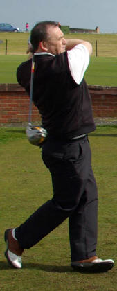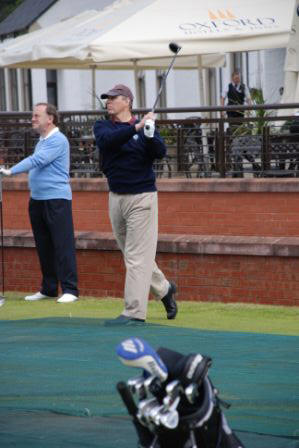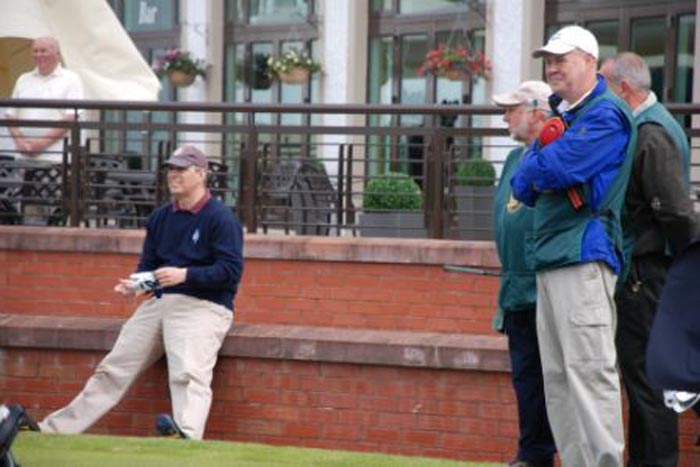 Take a look at the photos and see if you can spot the important person on the 1st tee of the Championship. Yes of course you’re right – its Vice Captain Simpson working extremely hard as usual. Not sure who the other guy is though, apart from Peem and Alfie. Somebody mentioned it could be Andy – but if its Andy Gilbride, he’s lost a lot of weight and grown half a futt recently. Anyway – at the risk of being sent to the Tower – only joking SIR, lovely swing!