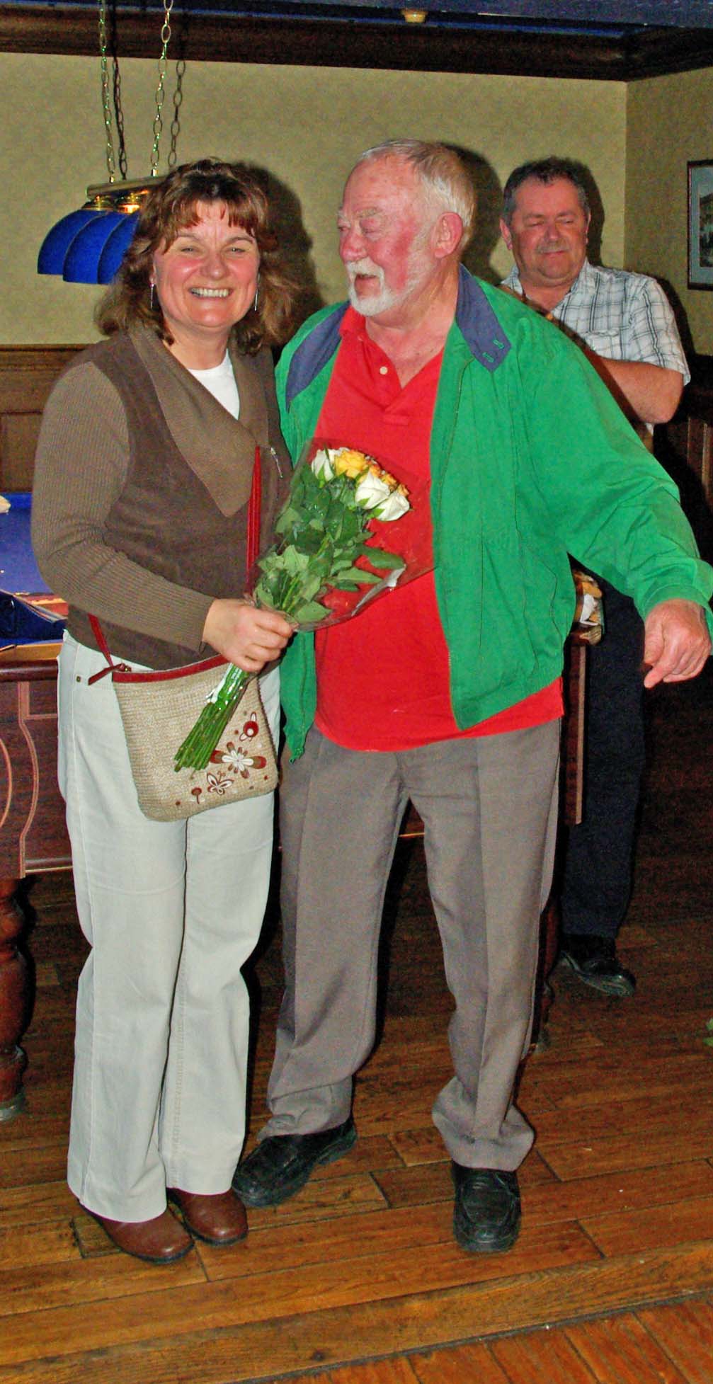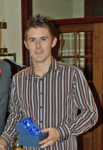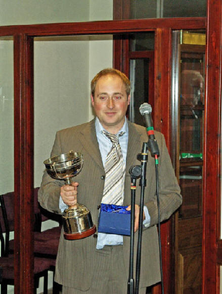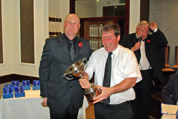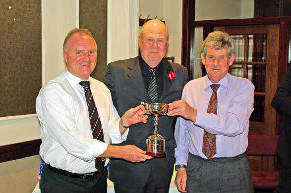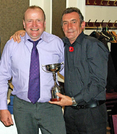 Last year’s winner Martin hands over the trophy to Frank