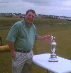 slightly out of his depth when last week, he came within touching distance of the famous Claret Jug. Andy, despite having been ignominiously dumped out of all the Club competitions he has played in this year, still harboured dreams of higher things (and for once this didn’t refer to some superior religious entity *). Andy was heard to say “if I only had the time to play seven days a week instead of six, maybe I would have a chance of getting my hands on this trophy. I will have to look at contracting out the ironing in the future”. We wish Andy all the best in both his quests.
