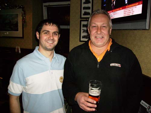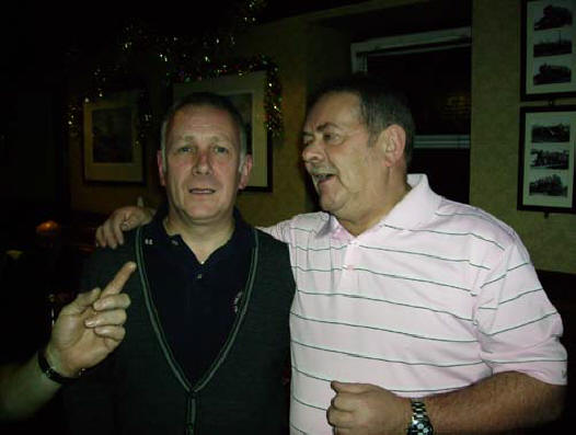The sylph-like duo celebrate at HQ after the match. Peter’s new anti-flab shirt appears to be working a treat!