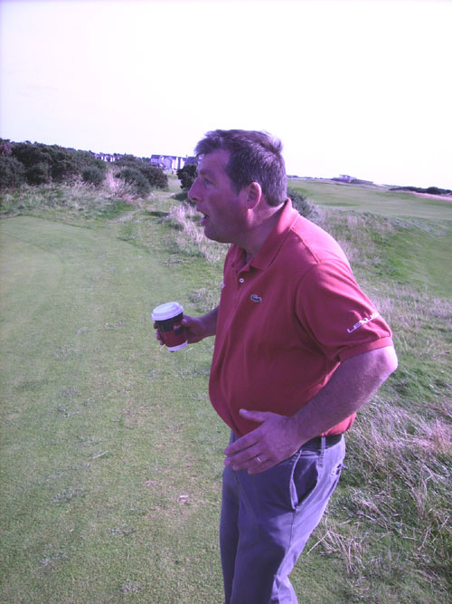 Station Masters members and guests travelled down to Lytham for a day’s entertainment at the Open Tournament courtesy of fellow member, Ronnie Bennett. The chums made their way to the holiday capital of Englandshire – BLACKPOOL for a couple of days much needed R & R after a long season. All the boys took turns at selecting a pub of their choice, which worked a treat until it came to one member (who shall remain nameless), who made an unfortunate error of judgement – or was it? Yes, the GreenTractorMan, AKA Norman Reid of the Scryne was leading a ‘splinter’ group that had broken-away from the main party, so most of us weren’t subjected to the harrowing incident. It transpires that Norman had spotted a brightly coloured pub called ‘The Gay Gordons’. Thinking that this was a bar that played hoochter teuchter music or mabye even indulged in an occasional eightsome reel, he led his hapless buddies, Stan and Sandy past the beautiful ‘Bernadette’ on the door. Having bought a round of drinks, Stan was impressed by how friendly all the guys in bar were, chatting away and commenting how big Nor’s hands were. All of a sudden, the feckless trio realised the true extent of their predicament! Bernadette was definitely Bernie during the day and it was obvious many of the other girls had ‘fel hairy legs. As it transpired, the gullible group managed to drink-up pretty quickly and took leave of their hosts before Nor started to enjoy himself too much! Anyway, off to Lytham the next day where the special bus from Blackpool drops off spectators close to the front gate – only a few minutes walk to the Course. What could possibly go wrong? One of the group (who shall remain nameless) decides to ask a taxi driver for directions to the Course. You’ve guessed it – Nor Reid, totally lost without the Satnav in his tractor, leads the group on a wild goose-chase through the streets of Lytham, arriving at the Course some 2 hours and approx 6 miles later. Despite this, a great day (what was left of it) was had by all – apart from Clarkie who lost his phone and Greg Docherty who had to sleep on the bench outside the hotel cos Stan wouldn’t get up to let him in. Once again many thanks to Ronnie and Ali for their wonderful hospitality.