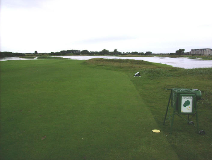Carnoustie Links has carried out a spectacular engineering feat at the Championship Course. Overnight, on the eve of Tassie Week, they have transformed the 17th and 18th holes on the Medal (see photos below). As if they weren’t difficult enough already, two of the most famous holes in golf have been remodelled (changed) in an attempt to scupper the chances of even the most ardent of golfers. A spokesperson from the Links commented “We’ll sort sort out those freeloaders who think they can come here for a cheap week’s golf. The 18th is now only a 444 yard carry to the green – this will sort out the men from the boys”. The newly formed water-feature does not quite comply to the James Braid design manual but we are assured the course will be back to normal when nature decides.