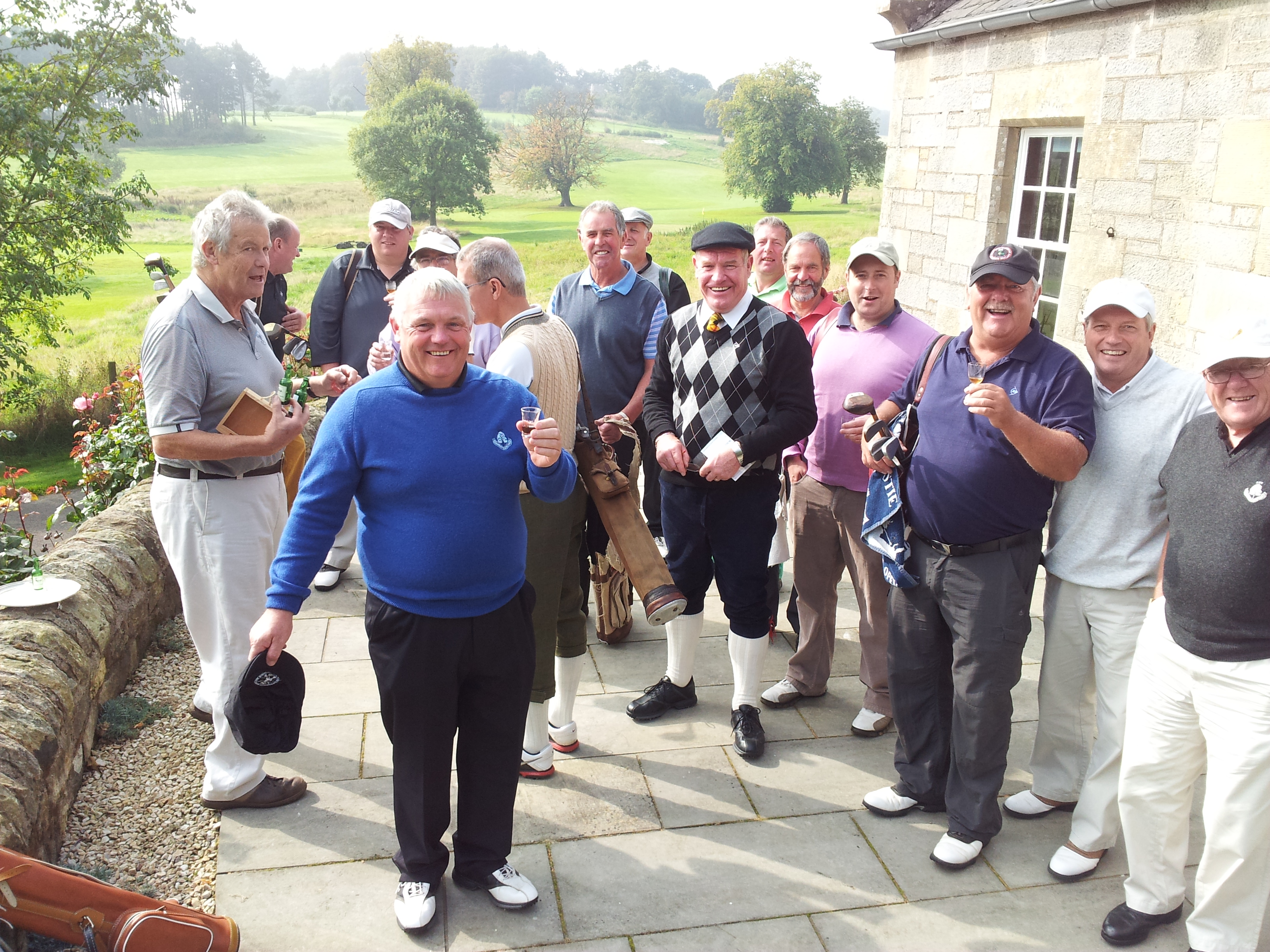 Players enjoy a wee dram before the tee-off. (More than one in Dave Leslie’s case!)