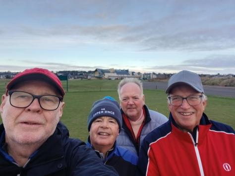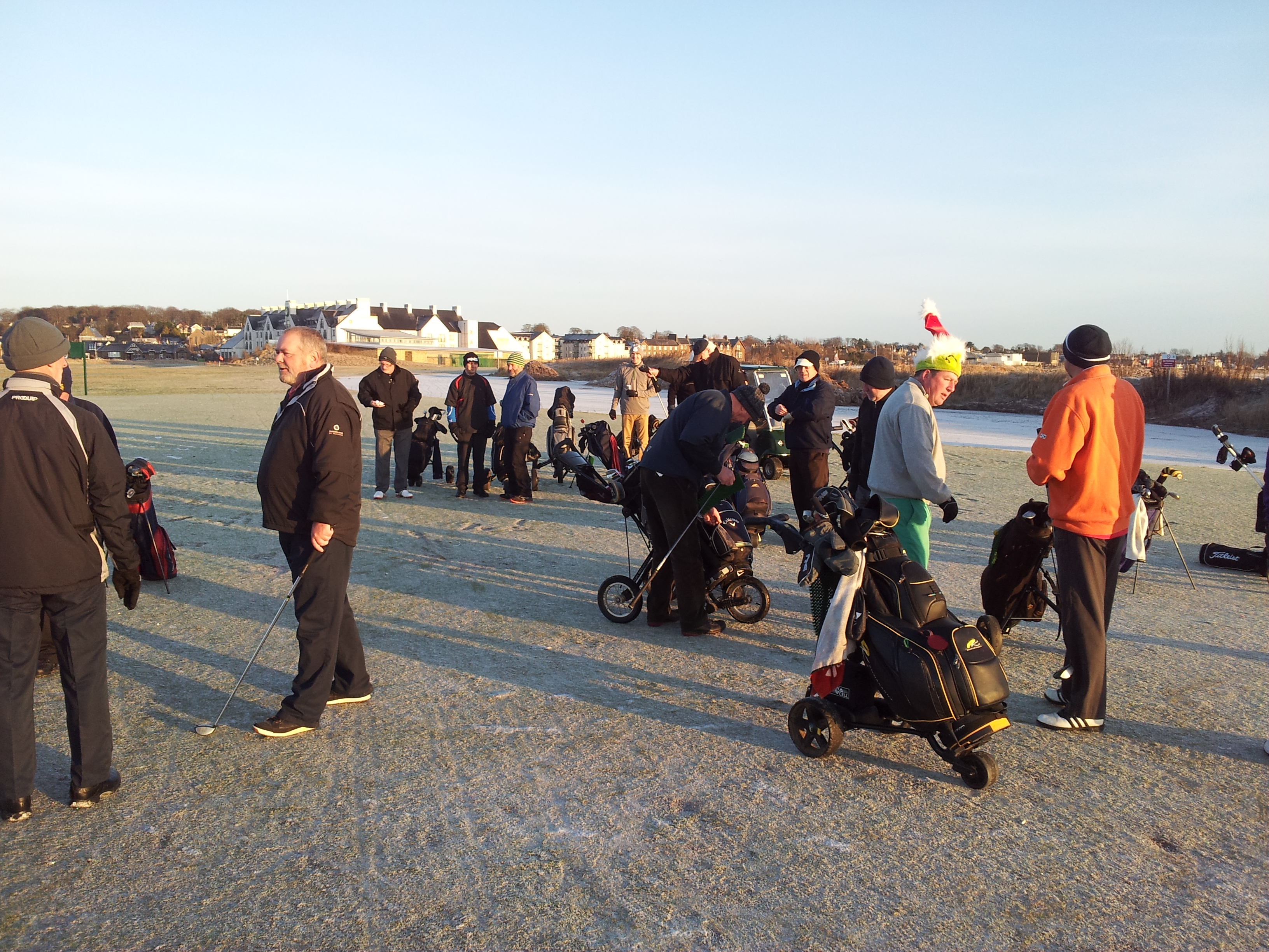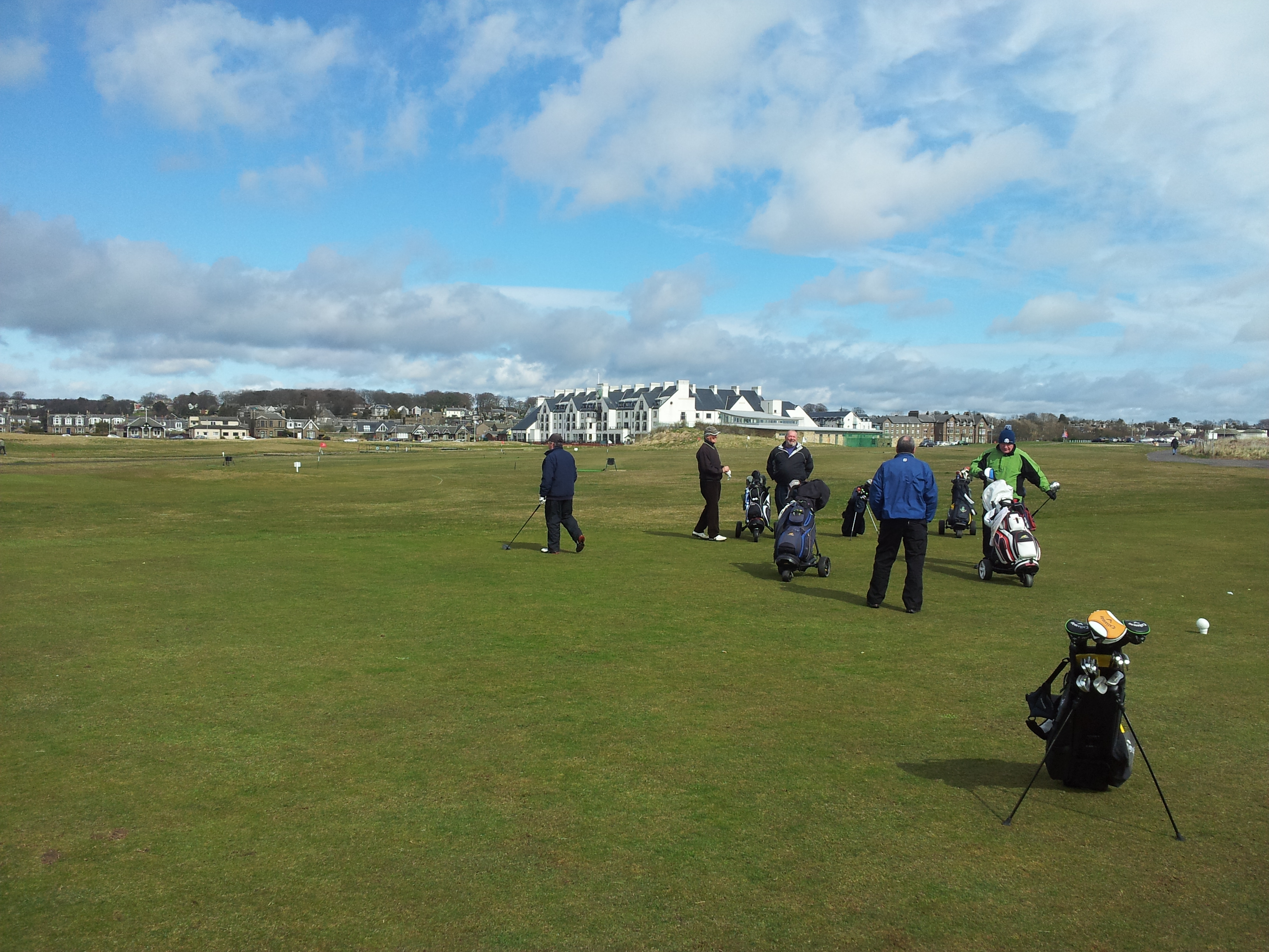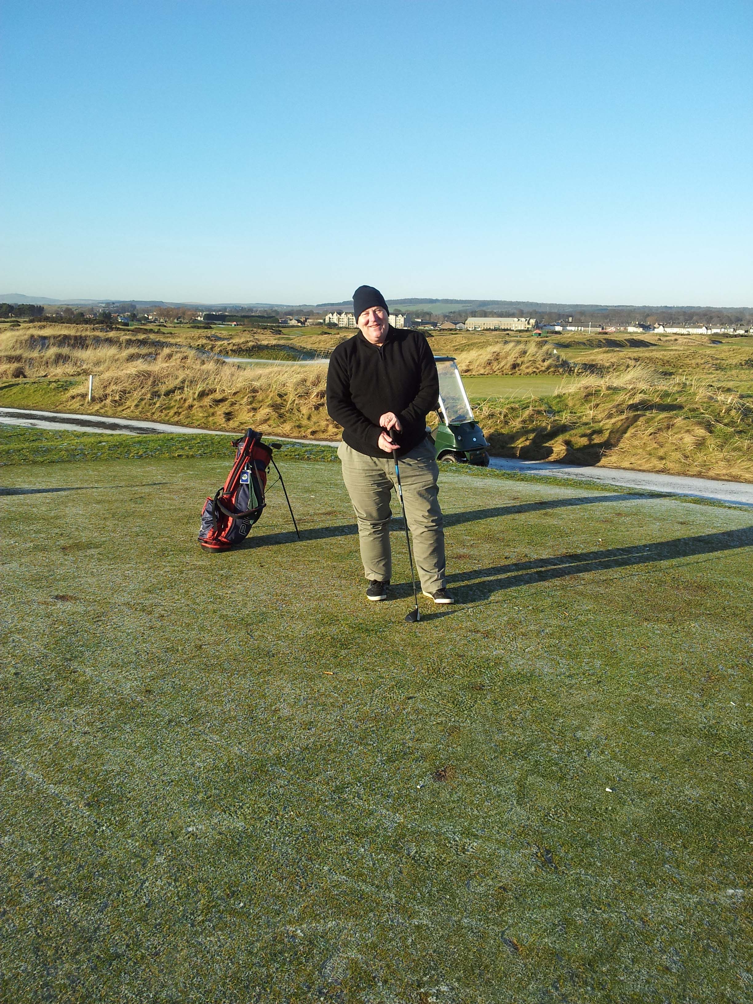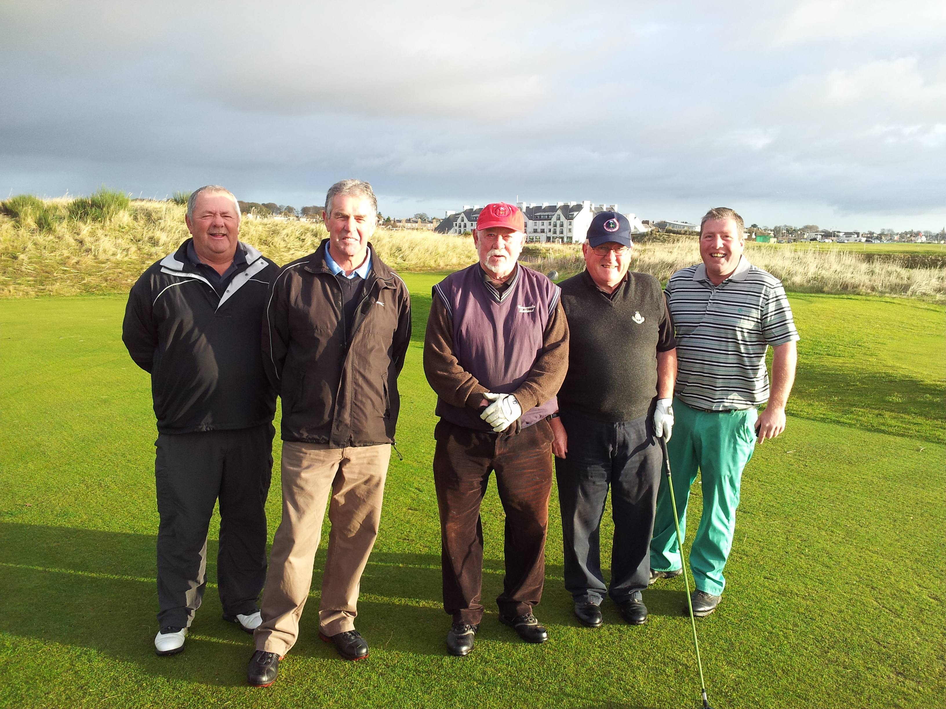 competitors prepare for tee-offArthur’s had a hard round – he’s falling asleep!veteran campaigner Alan Clark – 3rdDave Ritchie – anyone got any recipies for potato dishes?A sunny spring day in CarnoustieDavid Morton – longest drive (AGAIN)Capt Campbell’s best team – on paper. Obviously Dundee FC supportersJohn Gamack impersonating the Hon Captain – disgraceful!John Gamack – Most Improved Player (just had to finish the round if the truth be told)