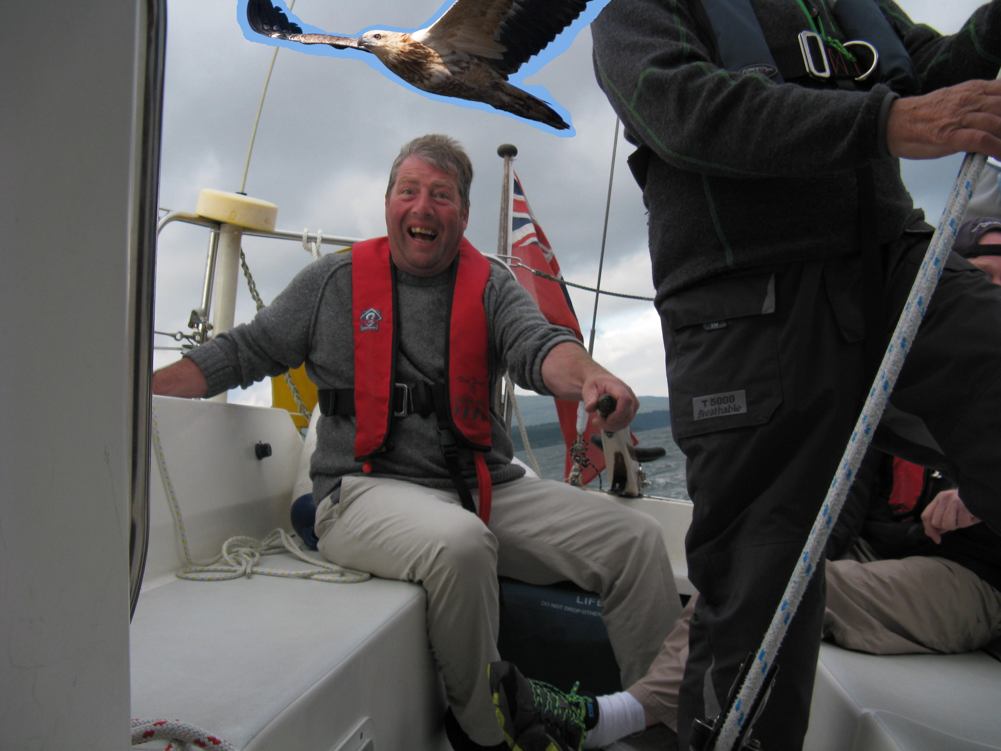The Voyage beginsMadman at the tillerNot a sea eagle in sight!