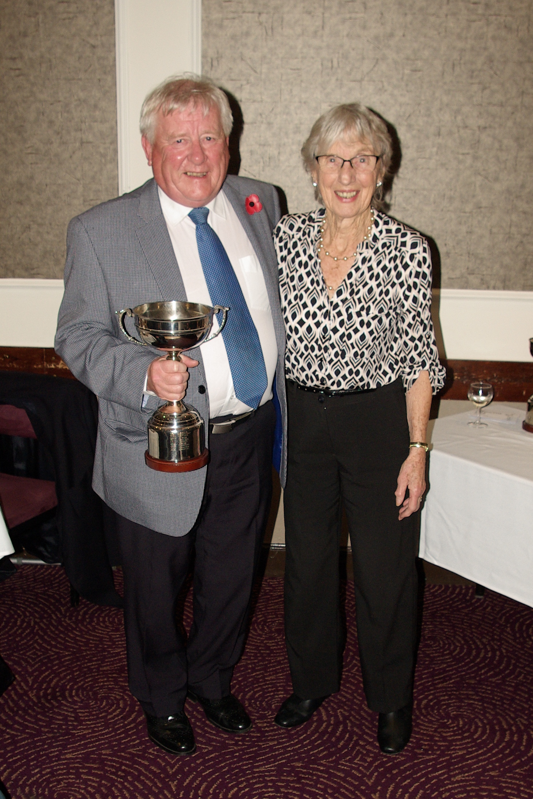 The Dave McNicoll Trophy – accepted by JS on behalf of Handicap Champion, Elaine Jewson