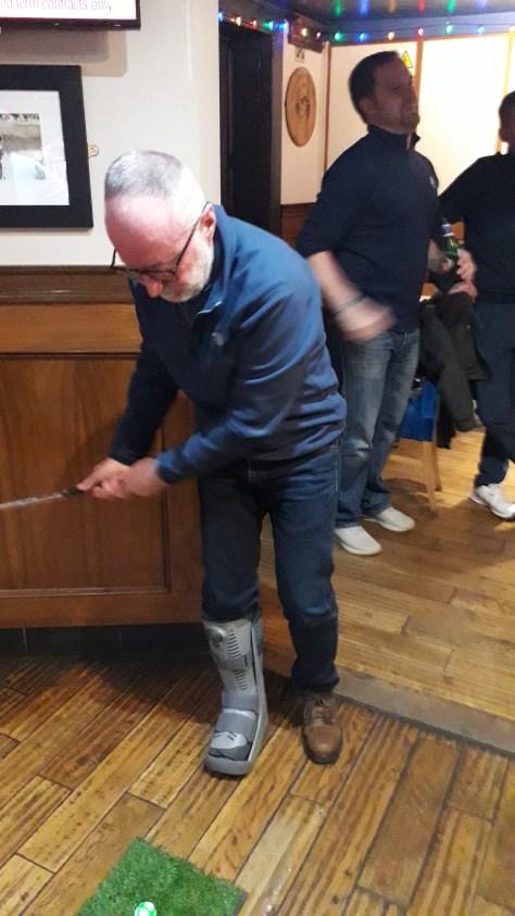 The sun rises above the horizon as we prepare to tee-off for the 2016 Texas ScrambleBurnett, Shepherd Coutie and Ritchie wait in eager anticipationSwans heading for the pond at the 11thHalf the runner’s up team turn-up for the prize-giving. Alan Clark and son Garry bag the chocciesGames-day organiser Coutie lays down the law to GreenTractorMan. Arthur polishes-off a large gin and tonic while Jessica keeps up-to-date with social media.A tense game of bones. Shepherd and Reid v Ritchie and PhinnMembers of the winning Scramble team, affectionately referred to by some as ‘the cheatin b*st*rds’, display their booty on the barAnother tense game of bones! Holland and Meek take on Doherty and SmithApologies for fuzzy foto! Pool Winners – Gilbride and Fulton