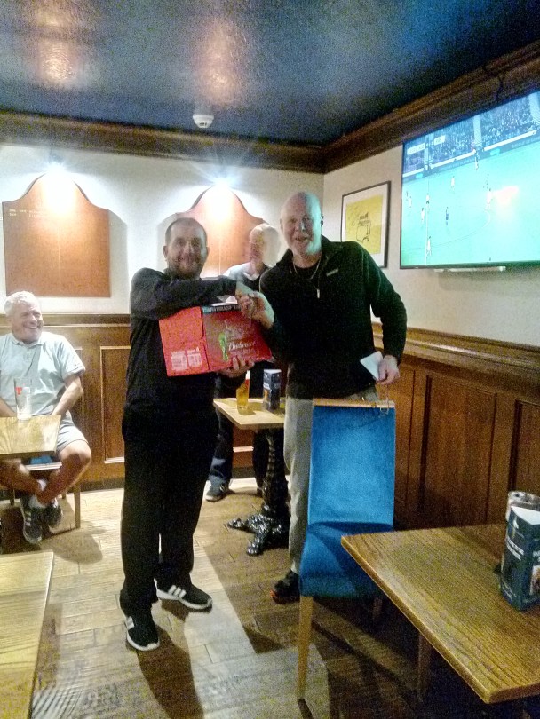 Autumn outing 2018 8 October 22, 2018 3168 × 4224 Latest News in Pictures Alan Clements wins the worst nett score prize – a case of Bud